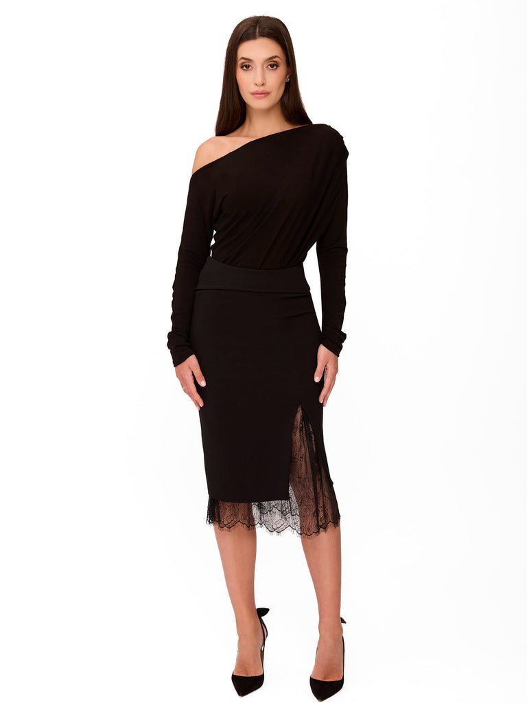 Fusta Carine cu insertii de dantela - Senzualitate discreta si stil atemporal