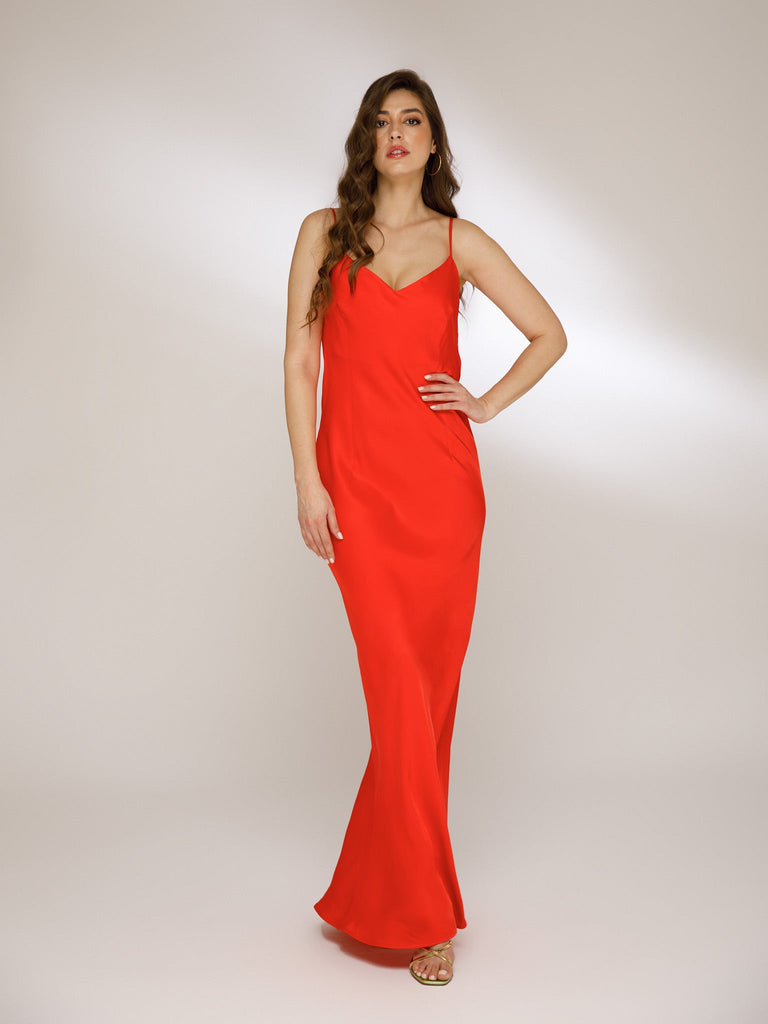 Made of a natural, silky material, the long dress with a bare back is one of the pieces that show off your body at any time you choose to wear it. The deep cut lets you see the whole back, which makes it extremely sexy, the thin spaghetti straps give it extra sensuality, and the length makes it perfect for any moment of the day.