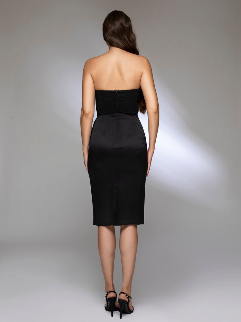 The tapered cut, built-in corset and elegant drapes make the Viviene dress a spectacular choice. The balconette neckline and bare shoulders create a wow effect, perfect for high-impact appearances.