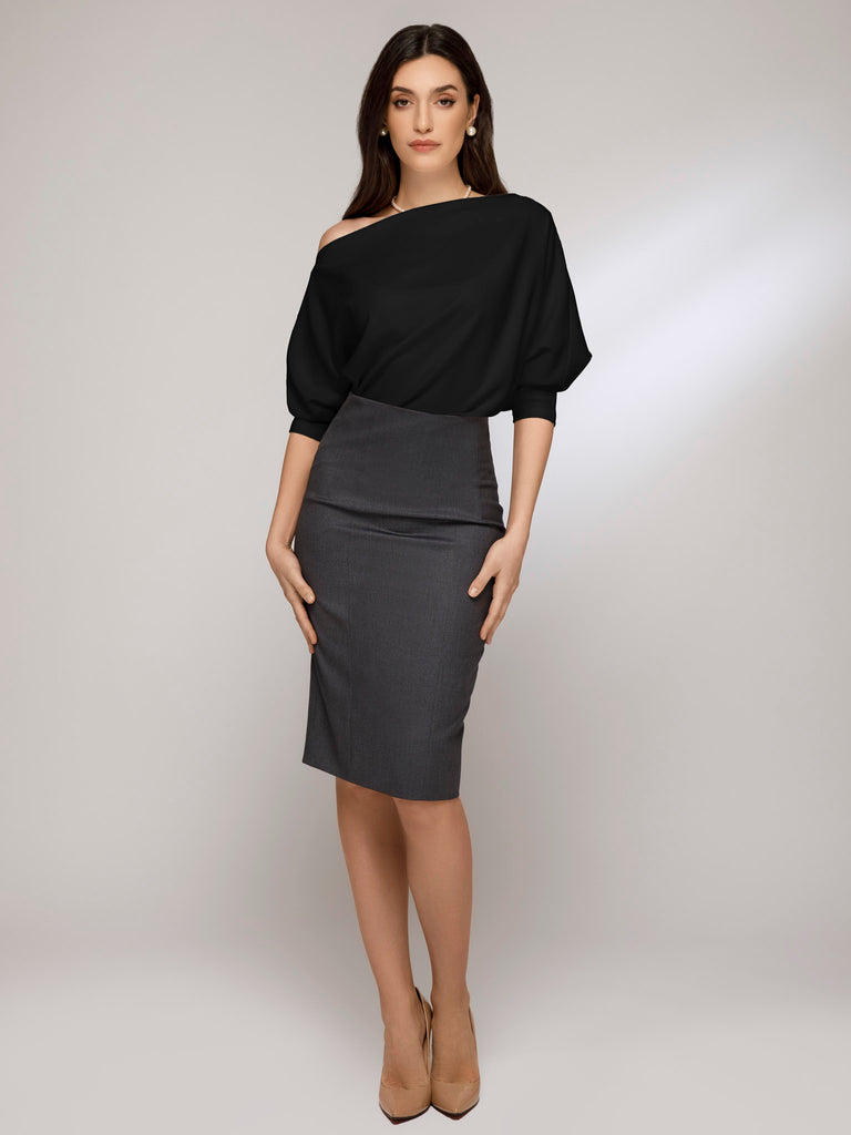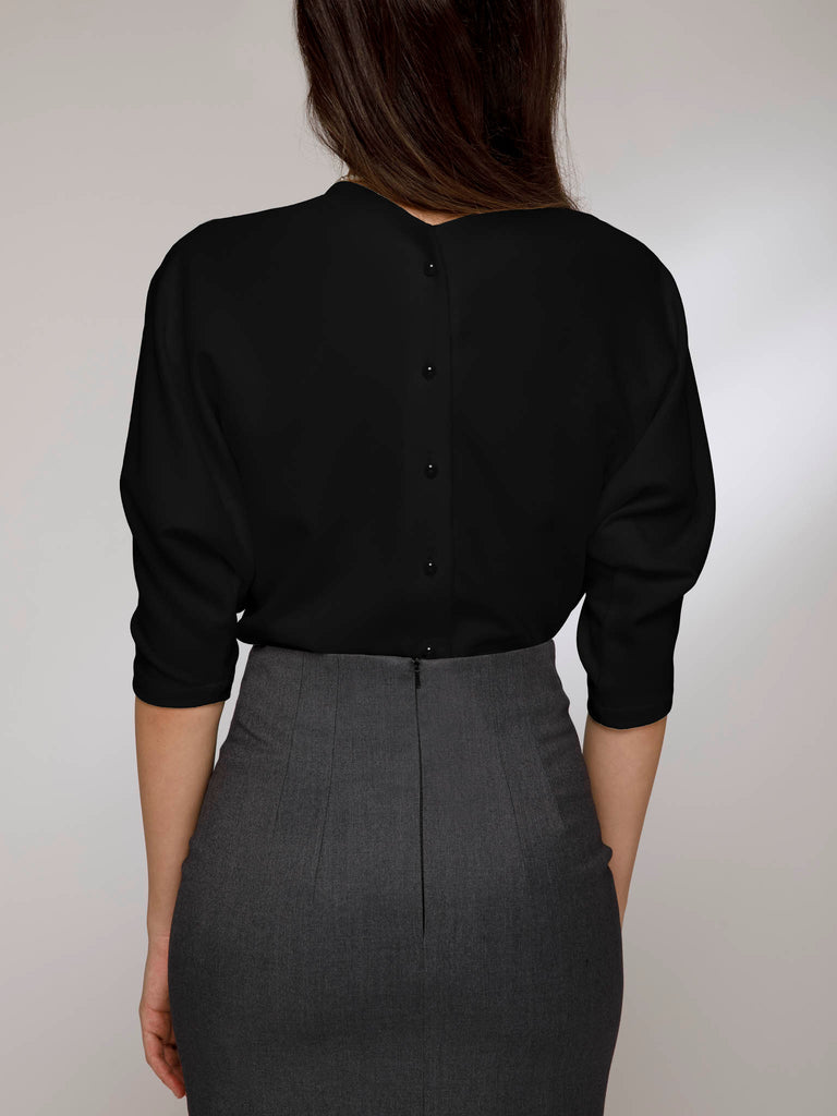 The Grace blouse is the essential piece for the woman who wants effortless elegance. The asymmetrical drape and one-shoulder line subtly contour the silhouette, offering a sensual and refined air. Decorative buttons and a relaxed cut complete a versatile design, easy to adapt from day to night.