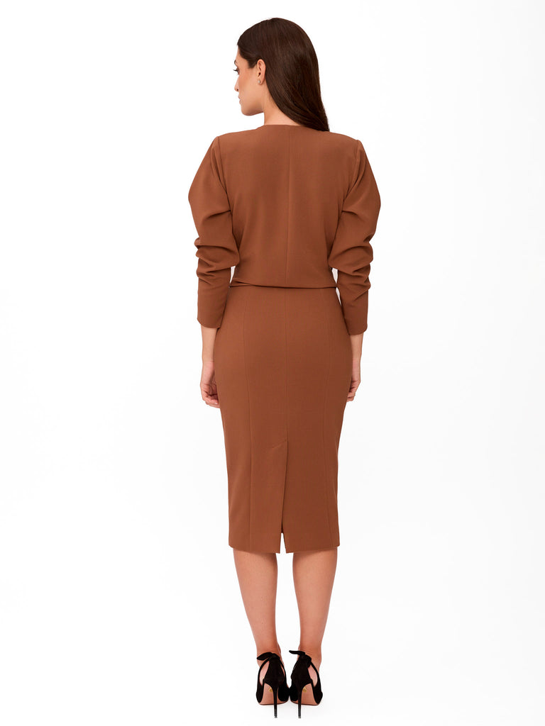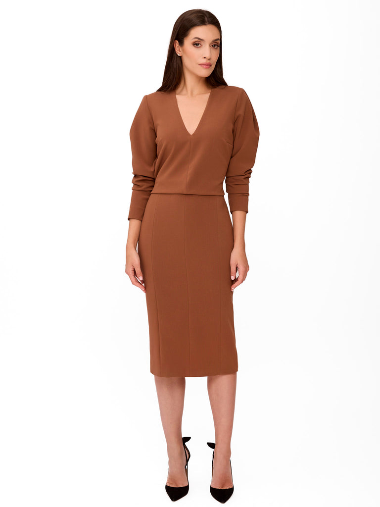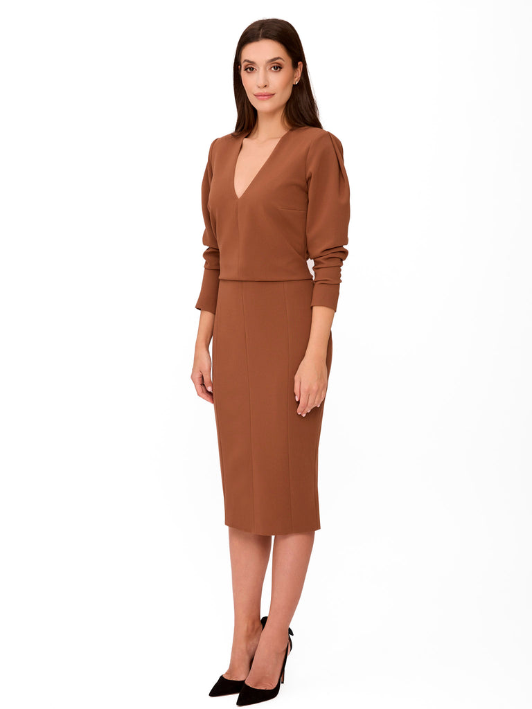 Rochie Vionna cu decolteu in V camel – Andreea Raicu