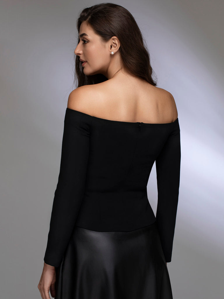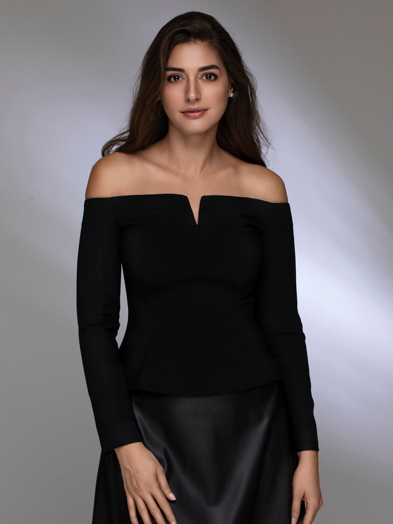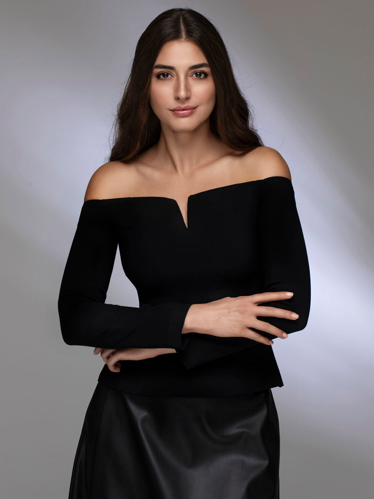 Wearing our Stella top, you will attract admiring glances at any elegant event. The sensual design of the top highlights your femininity, giving you a memorable appearance. Ideal for a night out or a luxurious party, this top ensures a refined and modern look. The carefully contoured shoulders give a seductive air, exuding charm and style in a subtle and sophisticated way.