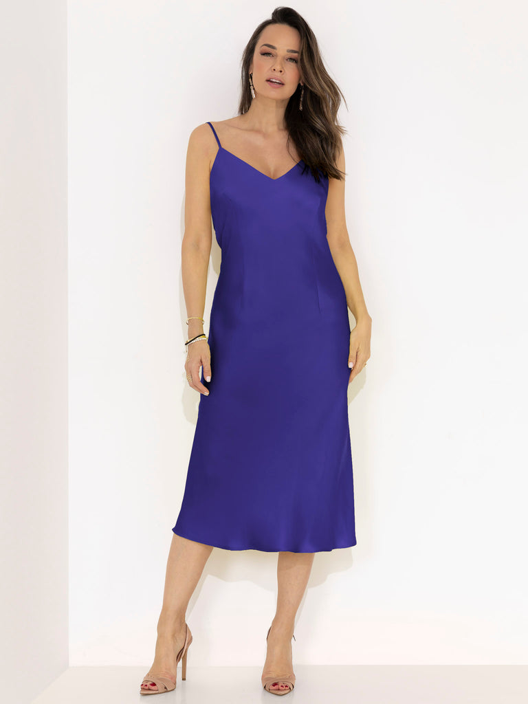Rochia are croiala bias, iar bretele au inele metalice ce ajuta la reglarea lungimii.