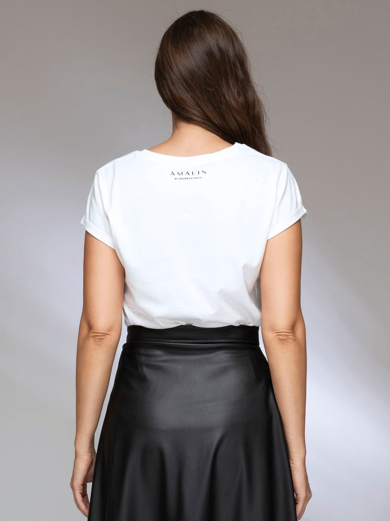 Poarta-l cu pantaloni de piele sau de paiete, atunci cand iti doresti un look glamour, sau cu o fusta pentru un plus de femininitate si senzualitate.