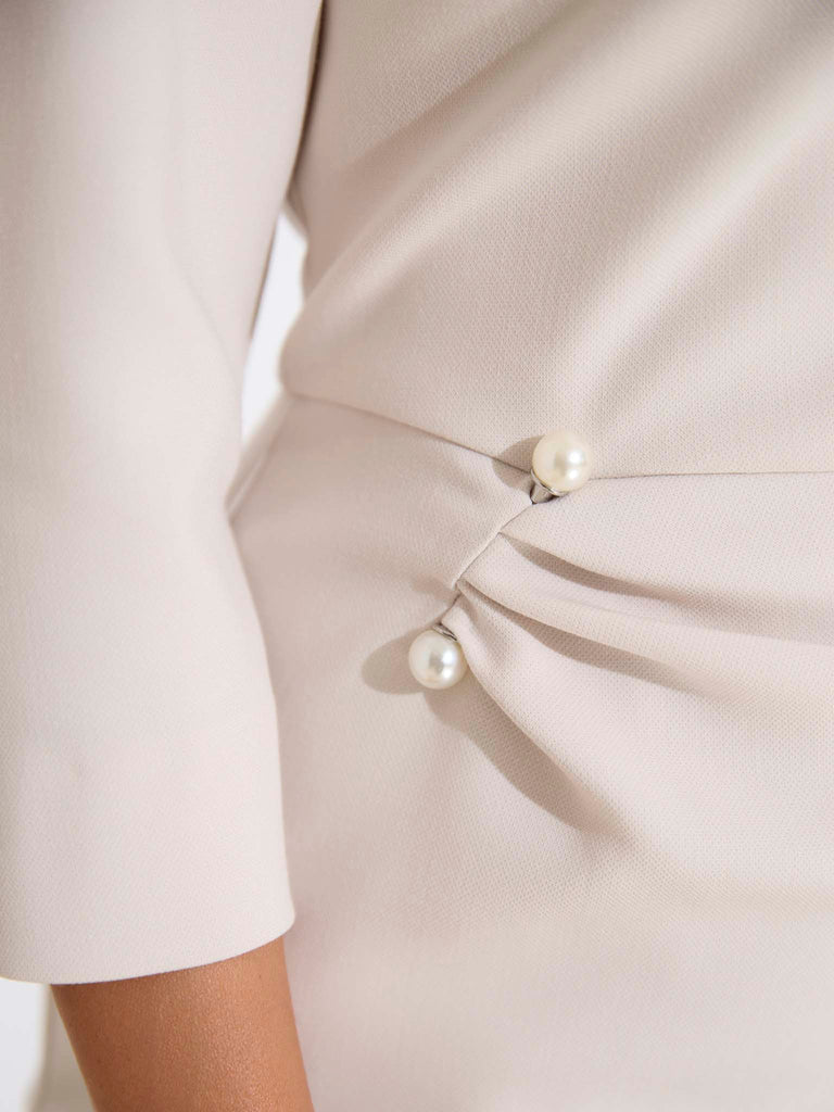 Rochie Claire vanilie cu pliuri si perle | Amalin – Andreea Raicu